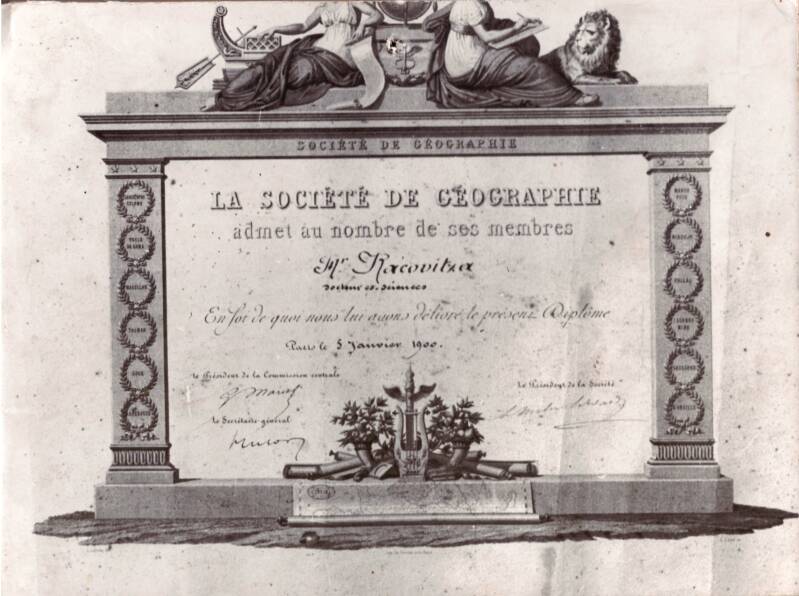 Pentru cele peste 400 de piese botanice primește titlul de membru corespondent al Societății Regale de Geografie din Anvers
