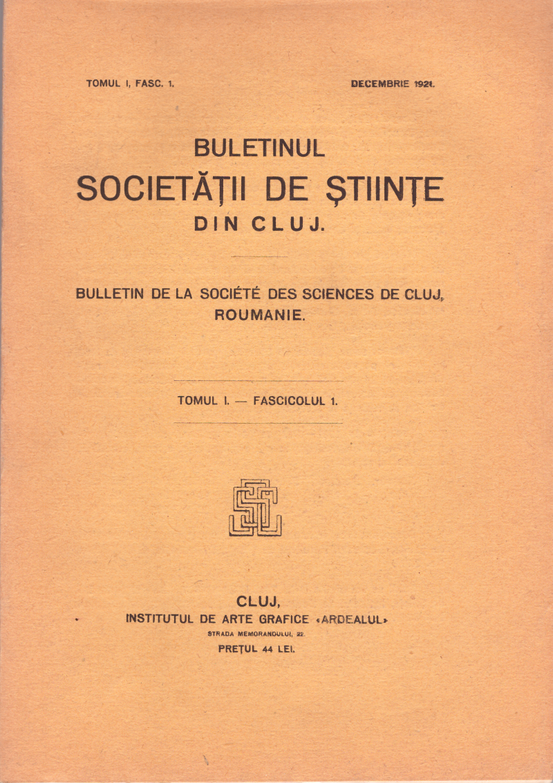 Buletinul Societății de Științe din Cluj vol I, fascicolul I