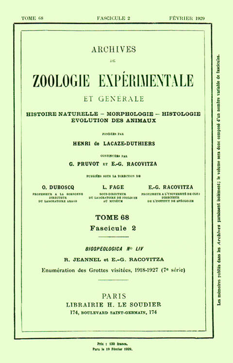 Publicația ARCHIVES DE ZOOLOGIE EXPÉRIMENTALE ET GÉNÉRALE coordonată de Emil Racoviță